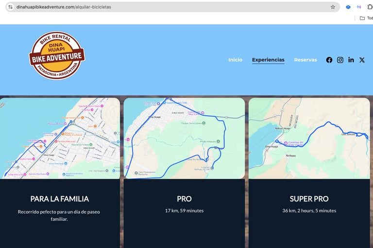 Página web para Rental de bicicletas en Dina Huapi - PA